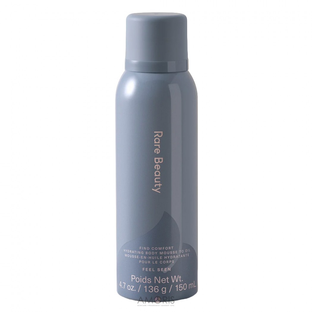 Find Comfort Hydrating Body Mousse to Oil Feel Seen от Rare Beauty — это инновационный увлажняющий мусс‑лосьон для тела, который преобразует свою легкую воздушную текстуру в богатое масло при соприкосновении с кожей. Это средство разработано для глубокого питания, интенсивного увлажнения и создания ощущения мягкости и комфорта с первой секунды применения. Мусс обогащает кожу влагой, делает её шелковистой и ухоженной, придавая здоровый, сияющий вид.