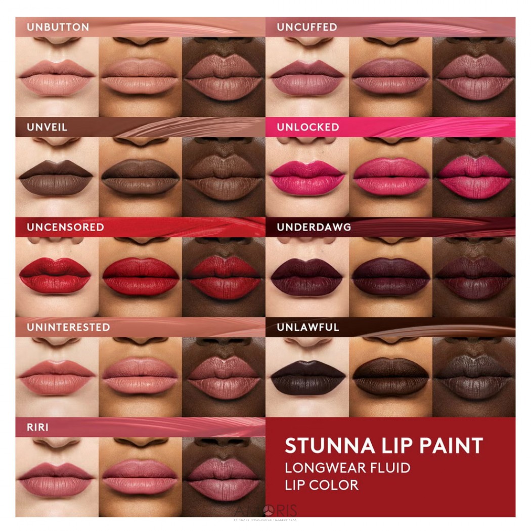 Stunna Lip Paint отличается высокой стойкостью и сохраняет насыщенность цвета на протяжении многих часов. Матовый финиш выглядит элегантно и современно, не теряя глубины и чёткости. Формула устойчива к смазыванию и помогает сохранить безупречный контур.