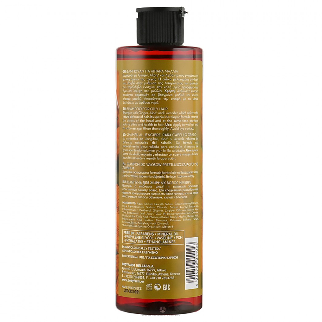 Особливості Ginger Shampoo For Oily Hair від Bodyfarm: