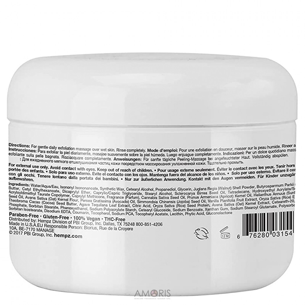 Зробіть шкіру гладкою та сяючою за допомогою поліруючого відлущувального засобу з дрібною шкаралупою волоського горіха та екстрактами рису та агави.