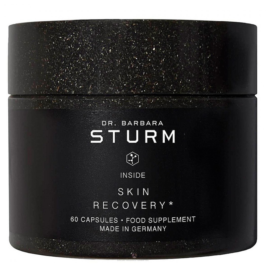 Наша шкіра завжди в першу чергу отримує кумулятивні збитки, які можуть виникнути внаслідок впливу навколишнього середовища. Але за правильної підтримки вона цілком здатна до самовідновлення, що свідчить про зменшення ран, прищів і подразнень. Лікар Барбара Штурм розробила свої капсули харчових добавок для відновлення шкіри Skin Recovery, які спеціально забезпечують необхідний догляд за шкірою. Цинк - це часто дефіцитний мікронутрієнт, який був широко вивчений щодо його потужних антиоксидантних властивостей, а також здатності зміцнювати імунну систему і захищати шкіру від окислювального стресу. Вітамін С сприяє утворенню колагену у поєднанні з рядом ефективних рослинних сполук, таких як портулак, корінь імбиру та екстракт виноградних кісточок, що захищають від окислювального стресу. Цей комплекс корисних речовин підтримує здоров'я шкіри, робить її гладкою, сяючою та молодою.