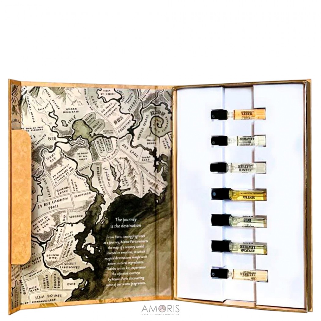 Memo Journey Book - це можливість випробувати сім ароматних композицій та відкрити для себе парфуми, які відображають суть бренду Memo Paris: дух дослідження, розкоші та вишуканості.