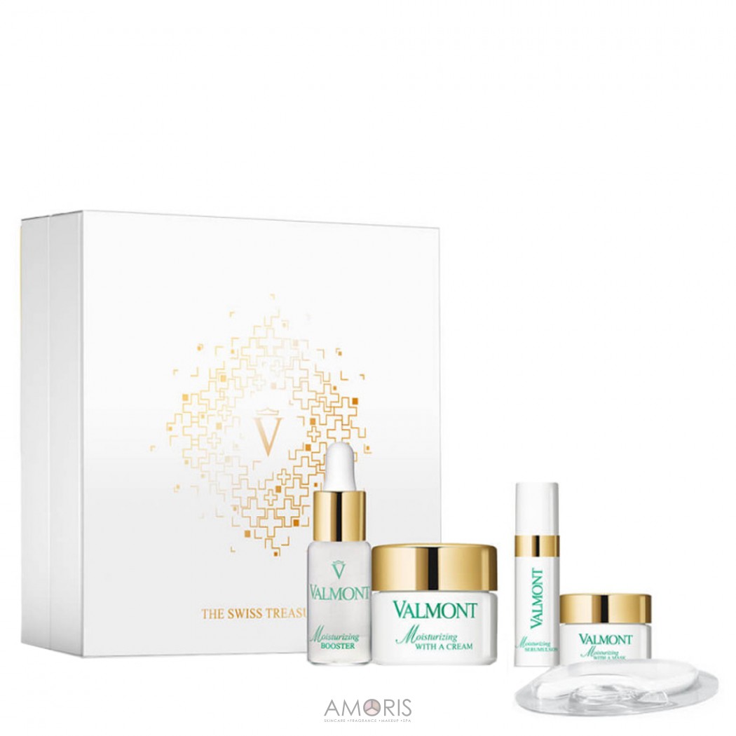 Valmont Moisturizing With A Cream: Water, Glycerin, Cyclopentasiloxane, Butylene Glycol, Sorbitan Stearate, Cetearyl Ethylhexanoate, Cetyl Alcohol, Glyceryl Stearate, Butyrospermum Parkii Butter, PEG-20, Argania spinosa Kernel -1 , Bisabolol, Shea Butter Extract, Calcium DNA, Calendula Officinalis Seed Oil, Ceratonia Siliqua Gum, Chondrus Crispus Powder, Dimethylsilanol hyaluronate, Echinacea Purpurea Root Extract, Magnesium DNA, Malva Sylvestris Flower Saccharide Isomerate, Sodium Hyaluronate, Spent grain wax, Tocopherol, Carbomer, Citric Acid, Dimethiconol, Disodium EDTA, Isopropyl Myristate, PEG-8, Propylene Glycol, Sodium Citrate, Sodium Hydroxide, Xanthan Gum, Chlorhexylydiglu ben, Phenoxyethanol , Potassium Sorbate, Sodium Benzoate, Fragrance, Behenyl Benzoate, Benzyl salicylate, Cinnamyl alcohol, Citral, Citronellol, Eugenol, Geraniol, Hexyl Cinnamal, Hydroxycitronellal, Limonene, Linalool.