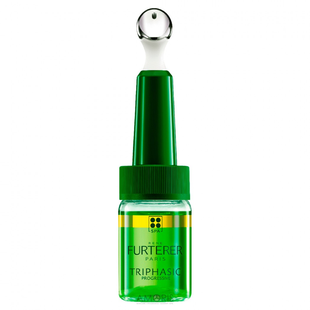 Triphasic Progressive гальмує випадання волосся, покращує структуру волосся і стимулює його зростання. Запатентована унікальна формула з комплексом Біотринін, екстрактом пфаффії, гарбуза та ефірної олії апельсина, надає потрійну дію на шкіру голови: активізує циркуляцію в шкірі голови, стимулює зростання нового, сильнішого волосся, регулює виділення шкірного жиру.